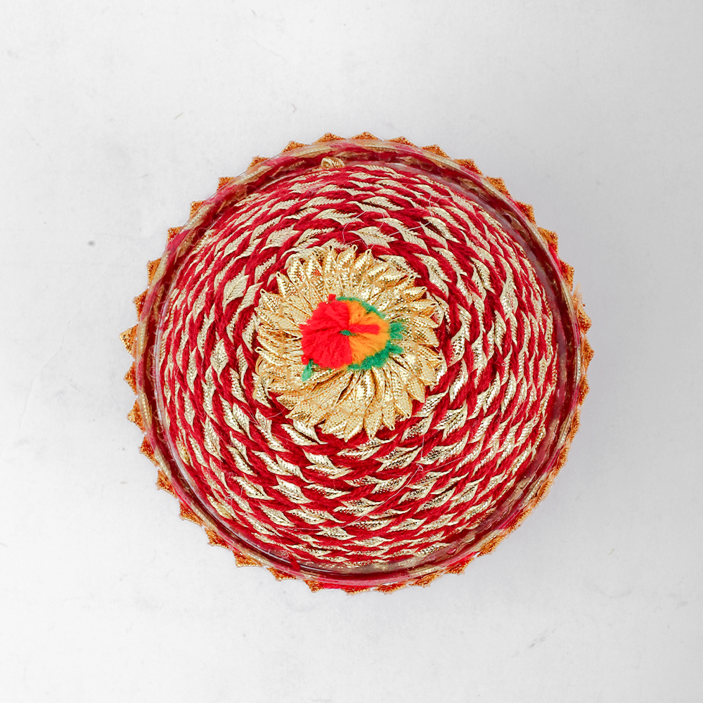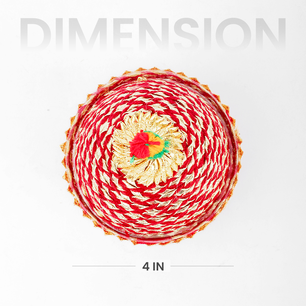 Each box features intricate gota work on a sturdy plastic base, ensuring both beauty and durability. With a compact size of 4 × 4 inches and a 4-inch depth, these bid boxes offer just the right amount of space for your cherished gift items.
